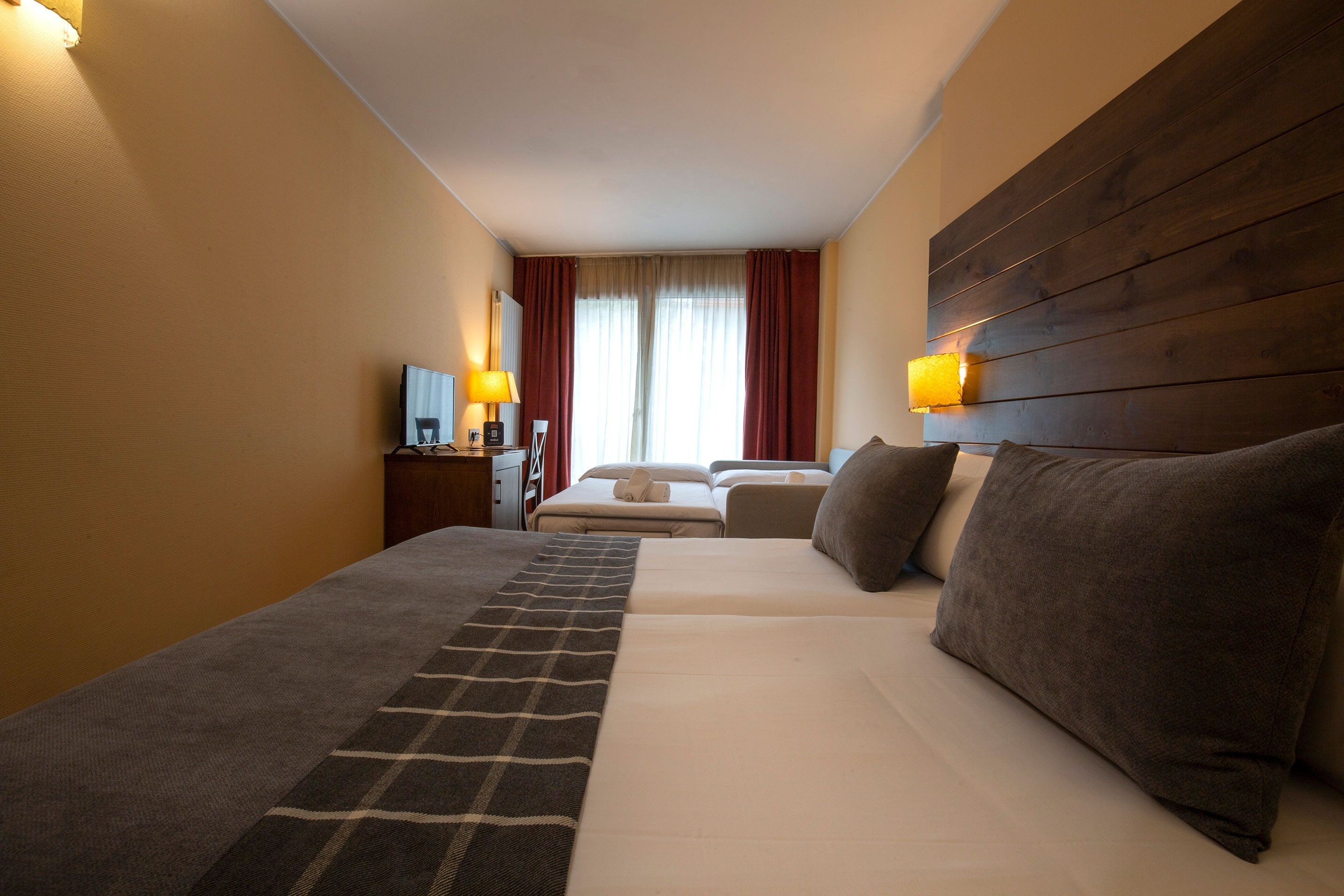 Un plus d´amplitud amb estil. Amb llit de matrimoni i sofà llit doble, aquesta habitació exterior és ideal si busques confort extra per a una escapada en grup amb un toc especial.